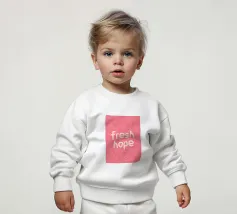 Le nostre felpe per neonati sono realizzate all'85% in cotone biologico ed etico e al 15% in poliestere riciclato.