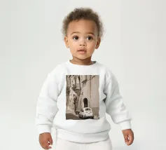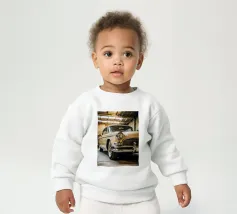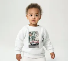 In una pittoresca strada di Londra, un'elegante auto d'epoca passa davanti a facciate di mattoni con un'atmosfera retrò e senza tempo dell'architettura britannica, mescolando storia e nostalgia urbana.