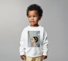 Un ritratto accattivante di una donna che indossa una maschera nera e corna, evidenziato da un'aureola dorata luminosa e da uno sfondo astratto e strutturato, che crea un'atmosfera mistica ed enigmatica.