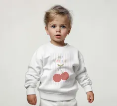 Le nostre felpe per neonati sono realizzate all'85% in cotone biologico ed etico e al 15% in poliestere riciclato.