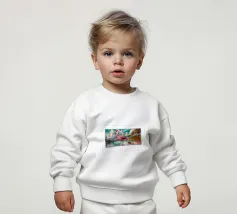 Le nostre felpe per neonati sono realizzate all'85% in cotone biologico ed etico e al 15% in poliestere riciclato.