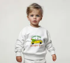 Il disegno festivo raffigura un dinosauro verde con un cappello da Babbo Natale, alla guida di un camion rosso. Intorno al dinosauro ci sono decorazioni a tema natalizio, come alberi di Natale e fiocchi di neve, con il testo "Merry Dynastmas - Purrrrrrrr".