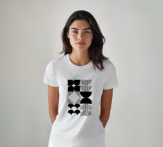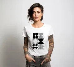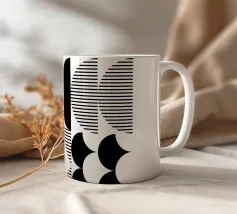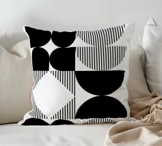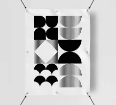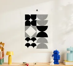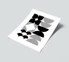 Il design pulito incontra la tensione visiva: questo motivo minimalista in bianco e nero combina forme geometriche come semicerchi, rombi e griglie di linee per creare un'opera d'arte moderna. Ideale come poster, cuscino, maglietta o murale - perfetto per gli amanti del Bauhaus, della metà del secolo e dei design monocromatici.