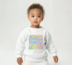 Le nostre felpe per neonati sono realizzate all'85% in cotone biologico ed etico e al 15% in poliestere riciclato.