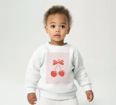 Le nostre felpe per neonati sono realizzate all'85% in cotone biologico ed etico e al 15% in poliestere riciclato.
