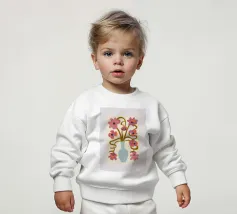 Le nostre felpe per neonati sono realizzate all'85% in cotone biologico ed etico e al 15% in poliestere riciclato.