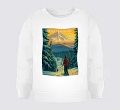 Uno sciatore si ferma al limite degli alberi, guardando il Monte Bachelor immerso nella luce dorata del tramonto. Sempreverdi innevati incorniciano la maestosa vetta, mentre ombre morbide si allungano sulle piste piene di polvere. Quest'opera d'arte cattura la tranquilla audacia del terreno alpino, un momento di silenzioso stupore nella luce alpina della natura.