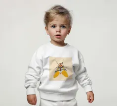 Le nostre felpe per neonati sono realizzate all'85% in cotone biologico ed etico e al 15% in poliestere riciclato.