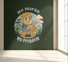 Questa opera d'arte raffigura un coraggioso personaggio medievale che cavalca con orgoglio un cavallo giocattolo di legno mentre batte le noci di cocco. Ispirato all'umorismo dei Monty Python, cattura una visione stravagante della cavalleria senza la necessità di un vero destriero. Perfetto per i fan della commedia classica britannica, dell'umorismo assurdo e delle parodie medievali.