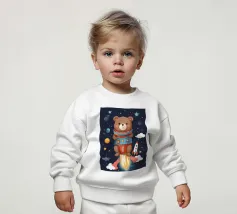 Questo simpatico motivo mostra un allegro orso che fluttua dolcemente nell'aria con un paracadute colorato. I tenui colori beige e pastello in combinazione con i motivi delicati e le nuvole minimaliste conferiscono a questa illustrazione un fascino senza tempo. Un disegno perfetto per gli amanti dei simpatici animali e degli scenari da sogno.Simpatico motivo con un orso fluttuante