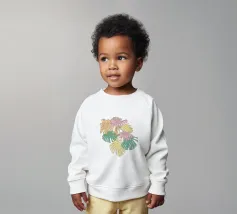 Le nostre felpe per neonati sono realizzate all'85% in cotone biologico ed etico e al 15% in poliestere riciclato.