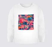 Un paesaggio tropicale vivace e colorato con palme, sole al tramonto e fogliame rigoglioso crea un'immagine vivida e idilliaca di una perfetta fuga in paradiso.