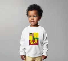 Un'illustrazione audace e ispirata alla pop art di banane e papaya su un piatto rosso brillante. I colori ad alto contrasto e lo stile grafico creano una dichiarazione vibrante e giocosa.