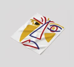 Un ritratto astratto audace e grafico in stile cubista, che ricorda Picasso. Il volto decostruito è composto da colori primari e da forti linee nere, che creano una dichiarazione potente e artistica.