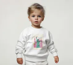 Le nostre felpe per neonati sono realizzate all'85% in cotone biologico ed etico e al 15% in poliestere riciclato.