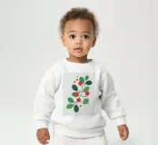 Le nostre felpe per neonati sono realizzate all'85% in cotone biologico ed etico e al 15% in poliestere riciclato.