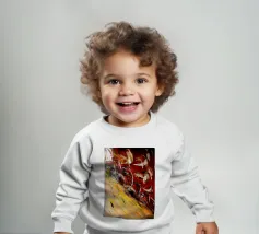Un dipinto digitale astratto e dinamico, caratterizzato da forme geometriche dai contorni netti e dalle vivaci sfumature rosse, arancioni e gialle, su uno sfondo nero e bordeaux intenso. Il disegno evoca calore, energia e contrasto attraverso il colore intenso e la frammentazione angolare.