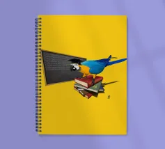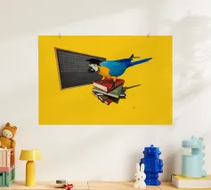 Illustrazione comica di un commento socio-politico sul modo in cui l'istruzione è diventata un meccanismo piuttosto che un sistema per sviluppare le menti. Tutto è copiato, ripetuto, ripetuto, ripetuto a pappagallo.