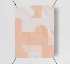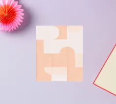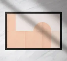 Motivo moderno di metà secolo ispirato ai pavimenti e ai murales in piastrelle di metà secolo. Linee slanciate, forme semplici, texture rumorosa e tavolozza di perle rosa.