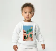 Le nostre felpe per neonati sono realizzate all'85% in cotone biologico ed etico e al 15% in poliestere riciclato.