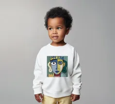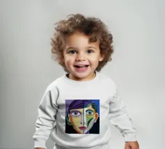 Quest'opera d'arte raffigura un ritratto astratto a due colori con sfumature blu e gialle. Le pennellate sono espressive e dinamiche e aggiungono profondità all'opera.