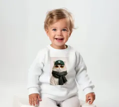 Le nostre felpe per neonati sono realizzate all'85% in cotone biologico ed etico e al 15% in poliestere riciclato.