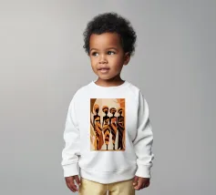 Una scena d'interni stravagante e astratta con una scala rosa, piante in vaso e un sole e una luna nel cielo visti attraverso un arco. L'opera d'arte è un paesaggio da sogno giocoso e bohémien.