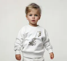 Le nostre felpe per neonati sono realizzate all'85% in cotone biologico ed etico e al 15% in poliestere riciclato.