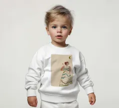 Le nostre felpe per neonati sono realizzate all'85% in cotone biologico ed etico e al 15% in poliestere riciclato.