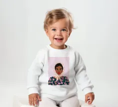 Ritratto ad acquerello fresco ed espressivo di una giovane donna dai capelli castano-rossicci legati all'indietro con un foulard a fantasia, che indossa un delicato top floreale, con uno sguardo dolce e diretto.