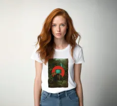 Un collage digitale surreale che mescola natura, tecnologia e distacco esistenziale. Una figura senza volto con un monitor CRT retrò al posto della testa, in piedi in una giungla tropicale. Sullo schermo si legge "YOU'RE OFFLINE", una tranquilla ribellione contro l'iperconnettività. Con forti contrasti, colori vivaci e un sorprendente sole rosso dietro il soggetto, quest'opera cattura la sensazione di disconnessione in un mondo iperconnesso. Perfetto per gli amanti del surrealismo botanico, dell'arte moderna del collage e dell'evasione digitale.