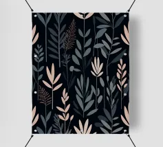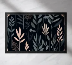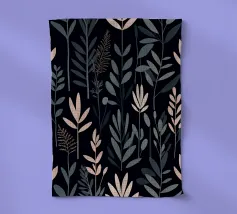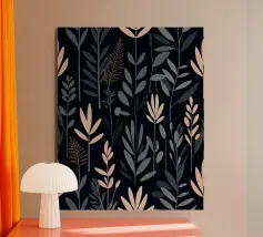 Questa elegante stampa botanica astratta presenta un'armoniosa miscela di foglie e fiori delicati nelle rilassanti tonalità del blu, del verde e del pesca. Il motivo si staglia su uno sfondo nero profondo, creando un'atmosfera sofisticata e rilassante. Perfetto per aggiungere un tocco di natura all'arredamento della vostra casa.