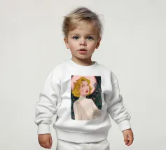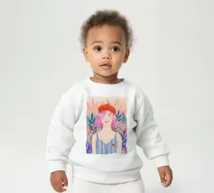 Ritratto di una donna pensierosa dai capelli biondi, le cui forme si intrecciano con un ramo delicato e frondoso, su uno sfondo rosa tenue, creando una composizione dolce e poetica.
