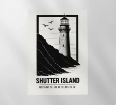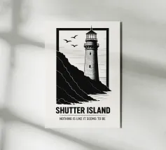 Stampa Shutter Island, Poster cinematografico alternativo, Bianco e nero, Minimalista, Faro, Reparto psichiatrico, Ospedale psichiatrico, Regalo per i fan del cinema