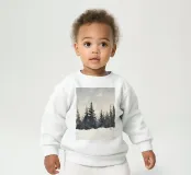Un dipinto invernale d'atmosfera che cattura la semplice bellezza della natura. Abeti rossi scuri si stagliano contro un cielo grigio e soffice, mentre il terreno riposa sotto una spessa coltre di neve. La struttura fine delle pennellate conferisce al dipinto profondità e un'atmosfera tranquilla. Questa scena ricorda la forza tranquilla dell'inverno, quei momenti in cui il mondo si riposa.