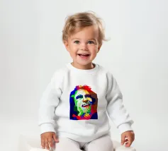 Un ritratto vibrante e geometrico di Sinead O'Connor in stile WPAP, caratterizzato da forme audaci e angolari e da un'impressionante gamma di colori vivaci e contrastanti. L'opera cattura i suoi tratti iconici, come la testa rasata, gli occhi penetranti e la forte espressione facciale, utilizzando blocchi di colore nitidi e frammentati. La composizione enfatizza la profondità e l'emozione mantenendo l'estetica pop-art cubista distintiva di WPAP, creando un tributo visivamente dinamico e moderno alla leggendaria cantante.