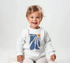 Le nostre felpe per neonati sono realizzate all'85% in cotone biologico ed etico e al 15% in poliestere riciclato.