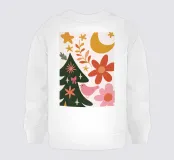 Una scena natalizia tenera e stravagante con un uccellino rosa che riposa accanto a un albero festivo sotto una luna dorata e stelle scintillanti. I toni caldi del blush, del terracotta e del senape si fondono con semplici forme floreali per creare un'atmosfera accogliente e modernamente boho. Perfetto per le camerette, le stanze dei bambini o gli interni natalizi che amano il fascino minimale e l'allegria dei colori pastello.
