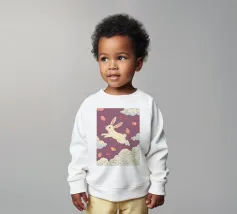 Illustrazione di un simpatico coniglio che salta nello spazio. "Neo" fa parte della collezione Space Rabbits.