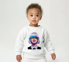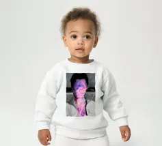 Un'opera d'arte digitale surreale presenta una donna con una felpa scura con cappuccio, il cui volto è illuminato da vibranti scie di luce al neon. I vortici multicolori e incandescenti le avvolgono la testa e il collo, creando un'atmosfera futuristica e onirica.