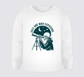 Uno scheletro in felpa che osserva le stelle? Questo disegno retro-vintage gioca con l'umorismo dark e la passione celeste. Perfetto per gli appassionati di astronomia, i fotografi notturni, gli amanti dell'arte spaziale o i fan delle immagini alternative. Con il suo stile grafico deciso e l'accenno al bisogno ossessivo di "solo un altro scatto", questo visual cattura lo spirito dei sognatori insaziabili. Ideale per chi ha la testa tra le stelle... fino alle ossa.