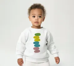Una serie di forme ovali impilate, di dimensioni e tonalità diverse, formano una torre. I colori passano dolcemente da toni scuri in basso a toni più chiari in alto, culminando in un piccolo cerchio scuro.