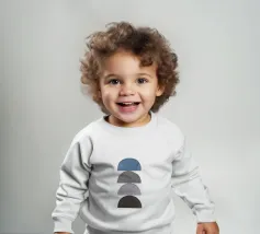 Le nostre felpe per neonati sono realizzate all'85% in cotone biologico ed etico e al 15% in poliestere riciclato.