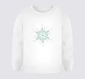 Design invernale: una stella dinamica a sei punte disegnata a mano in bianco e verde su uno sfondo grigio argento.