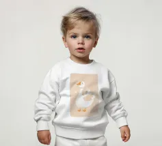 Le nostre felpe per neonati sono realizzate all'85% in cotone biologico ed etico e al 15% in poliestere riciclato.