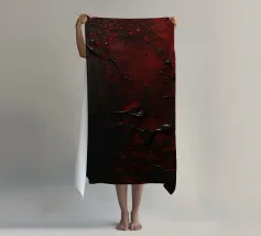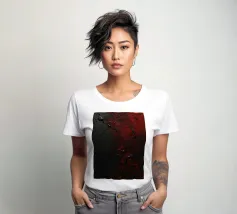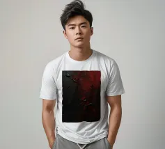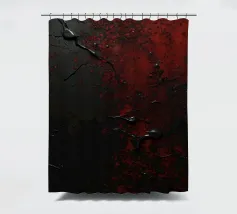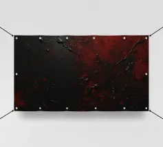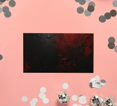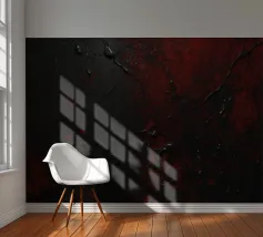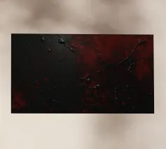 Audaci schizzi di vernice nera e rossa coprono una superficie scura, creando un disegno astratto. I colori contrastanti enfatizzano la consistenza e la profondità, esaltando l'espressione artistica.