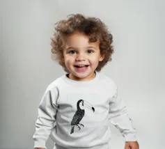 Le nostre felpe per neonati sono realizzate all'85% in cotone biologico ed etico e al 15% in poliestere riciclato.