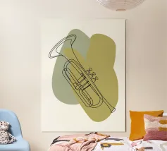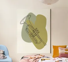 Catturate la bellezza della musica e dell'arte in un unico disegno! Questa illustrazione dettagliata di una tromba presenta dettagli sorprendenti, perfetti per gli amanti della musica e dell'arte.