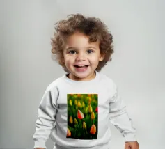 Le nostre felpe per neonati sono realizzate all'85% in cotone biologico ed etico e al 15% in poliestere riciclato.
