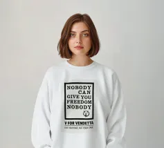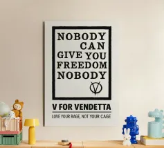 Stampa di V For Vendetta, Poster cinematografico alternativo, WallArt minimale in bianco e nero, Citazione sulla libertà, Nessuno può darti la libertà, Regalo per i fan del film